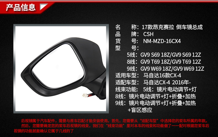 | 类型 | 后视镜 | 型号 | 马自达17款昂克赛拉 | 镜面种类 | 球面镜 |