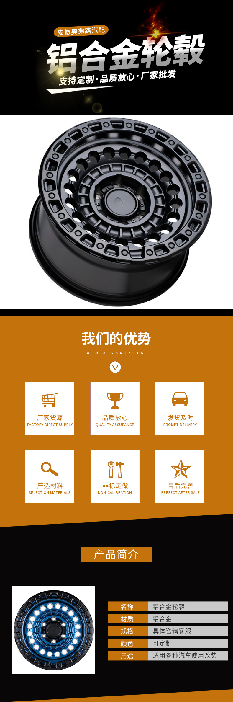 本网页所展示的有关【越野改装轮毂 厂家批发 质量放心 支持代发 欢迎选购_轮毂_安徽奥弗路汽配有限公司】的信息/图片/参数等由车云汇的会员【安徽奥弗路汽配有限公司】提供,由车云汇会员【安徽奥弗路汽配有限公司】自行对信息/图片/参数等的真实性、准确性和合法性负责,本平台(本网站)仅提供展示服务,请谨慎交易,因交易而产生的法律关系及法律纠纷由您自行协商解决,本平台(本网站)对此不承担任何责任。您在本网页可以浏览【越野改装轮毂 厂家批发 质量放心 支持代发 欢迎选购_轮毂_安徽奥弗路汽配有限公司】有关的信息/图片/价格等及提供【越野改装轮毂 厂家批发 质量放心 支持代发 欢迎选购_轮毂_安徽奥弗路汽配有限公司】的商家公司简介、联系方式等信息。