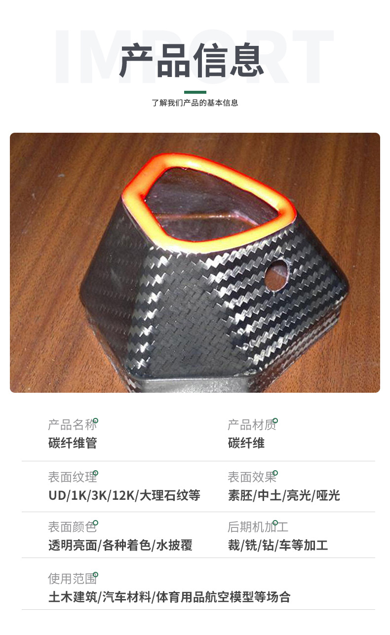 本网页所展示的有关【厂家供应碳纤维工厂运动材料汽摩配件碳纤维管各种纹路碳纤维管材_排气管_东莞市飞隆碳纤维科技有限公司】的信息/图片/参数等由车云汇的会员【东莞市飞隆碳纤维科技有限公司】提供,由车云汇会员【东莞市飞隆碳纤维科技有限公司】自行对信息/图片/参数等的真实性、准确性和合法性负责,本平台(本网站)仅提供展示服务,请谨慎交易,因交易而产生的法律关系及法律纠纷由您自行协商解决,本平台(本网站)对此不承担任何责任。您在本网页可以浏览【厂家供应碳纤维工厂运动材料汽摩配件碳纤维管各种纹路碳纤维管材_排气管_东莞市飞隆碳纤维科技有限公司】有关的信息/图片/价格等及提供【厂家供应碳纤维工厂运动材料汽摩配件碳纤维管各种纹路碳纤维管材_排气管_东莞市飞隆碳纤维科技有限公司】的商家公司简介、联系方式等信息。
