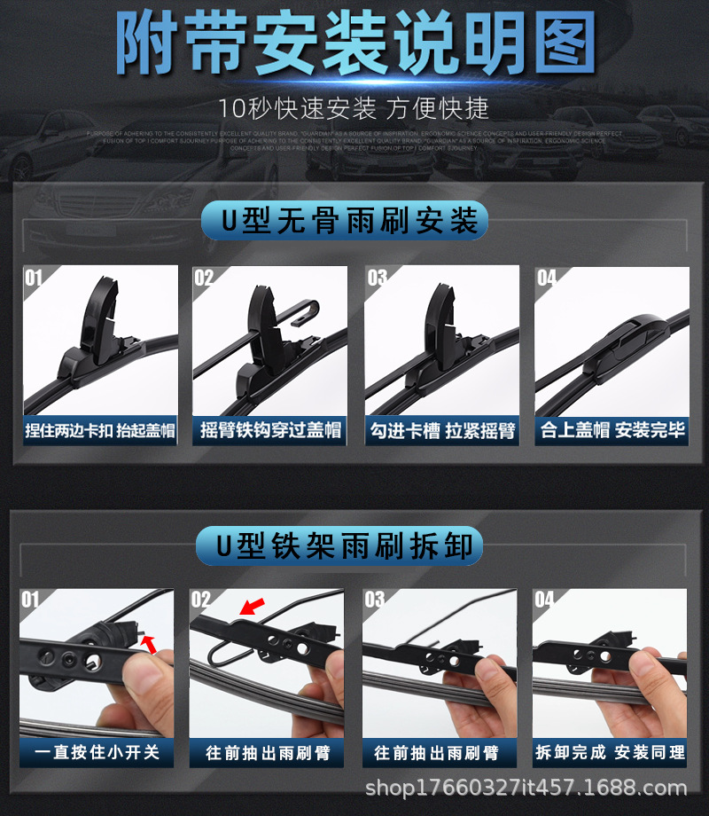 本网页所展示的有关【二代高品质U型通用无骨雨刷器可更换各种接口适配各种车型 雨刮器_雨刮片_清河县云辰汽车零部件有限公司】的信息/图片/参数等由车云汇的会员【清河县云辰汽车零部件有限公司】提供,由车云汇会员【清河县云辰汽车零部件有限公司】自行对信息/图片/参数等的真实性、准确性和合法性负责,本平台(本网站)仅提供展示服务,请谨慎交易,因交易而产生的法律关系及法律纠纷由您自行协商解决,本平台(本网站)对此不承担任何责任。您在本网页可以浏览【二代高品质U型通用无骨雨刷器可更换各种接口适配各种车型 雨刮器_雨刮片_清河县云辰汽车零部件有限公司】有关的信息/图片/价格等及提供【二代高品质U型通用无骨雨刷器可更换各种接口适配各种车型 雨刮器_雨刮片_清河县云辰汽车零部件有限公司】的商家公司简介、联系方式等信息。